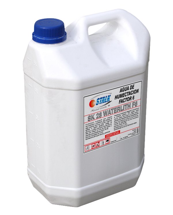 Concentración humectante para sistemas convencionales o alcohólicos. Solución de sales orgánicas que disminuye la tensión superficial, optimiza el balance agua/tinta, protege las planchas y mantillas mejorando el secado de tinta. Ideal para trabajos con tinta de alto impacto y materiales poco absorbentes (P.V.C). Regula el PH de 6 a 8.